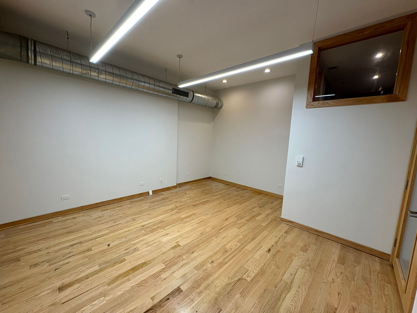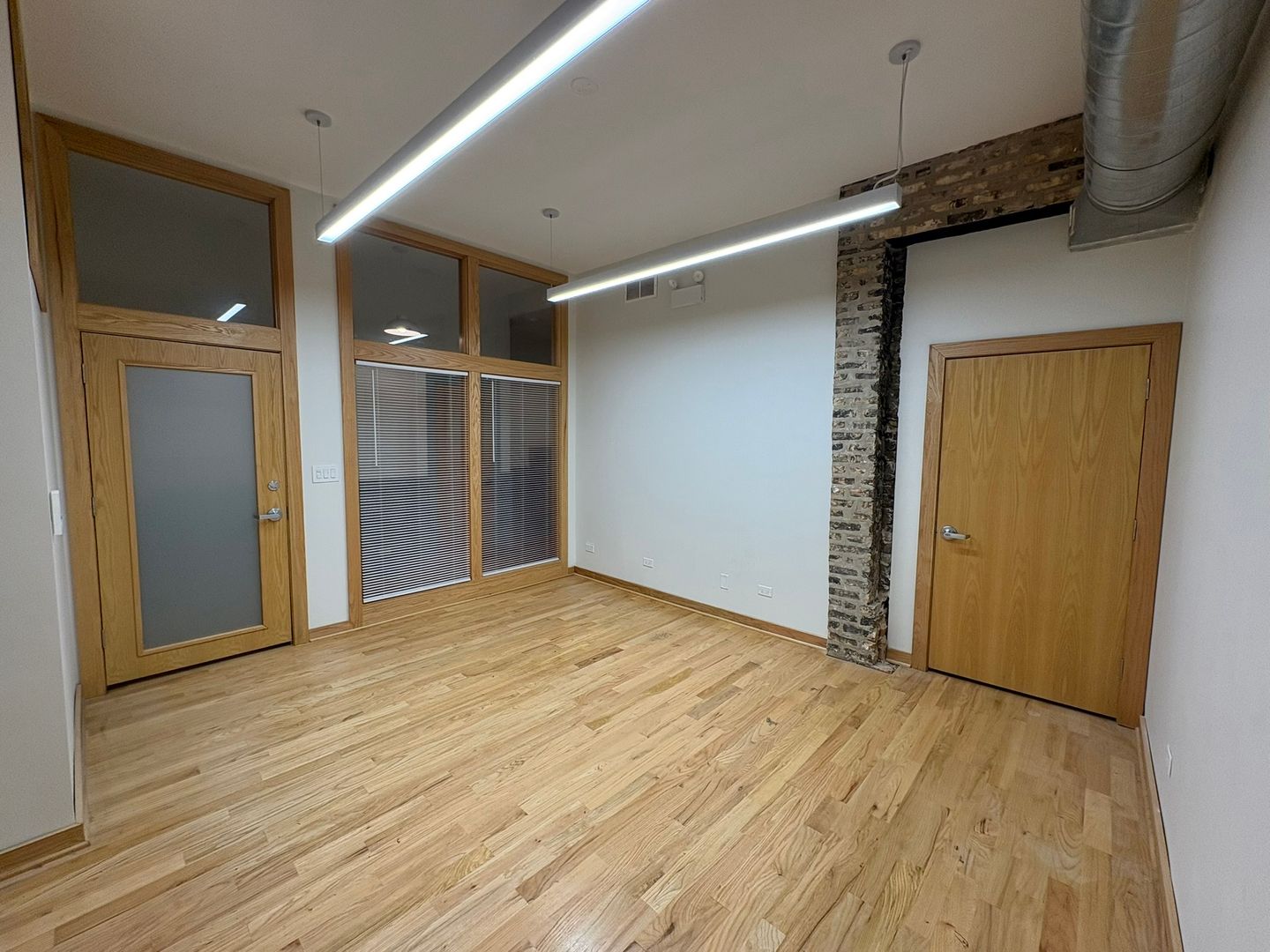 Located on the raised 1st floor of a vintage red stone building on Diversey Parkway near Sheridan Rd. This office space features tall ceilings, hardwood floors throughout, exposed brick and offers a blend of both modern and vintage character elements.