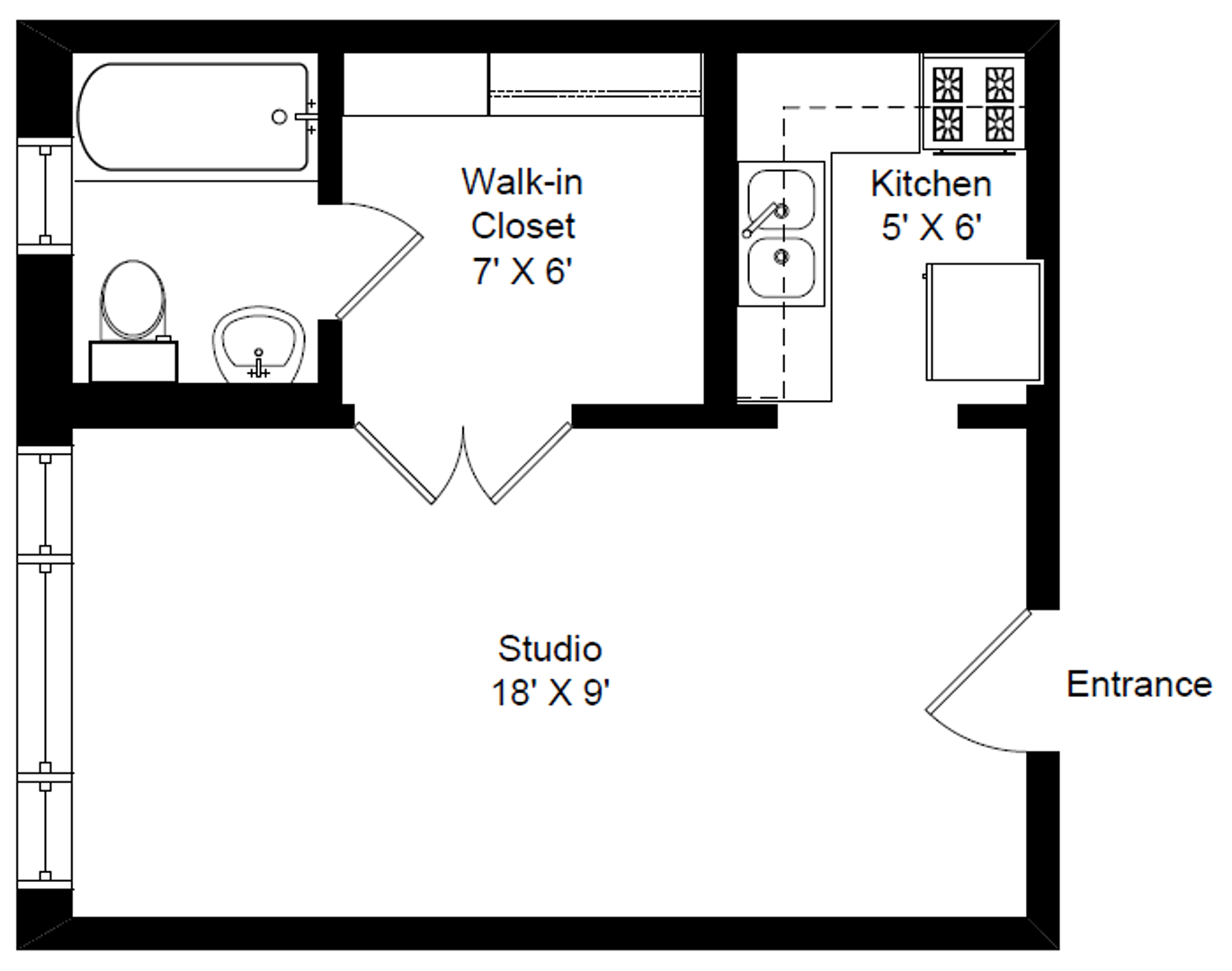 Sunny Lakeview Studio with Sep. Kitchen & WIC