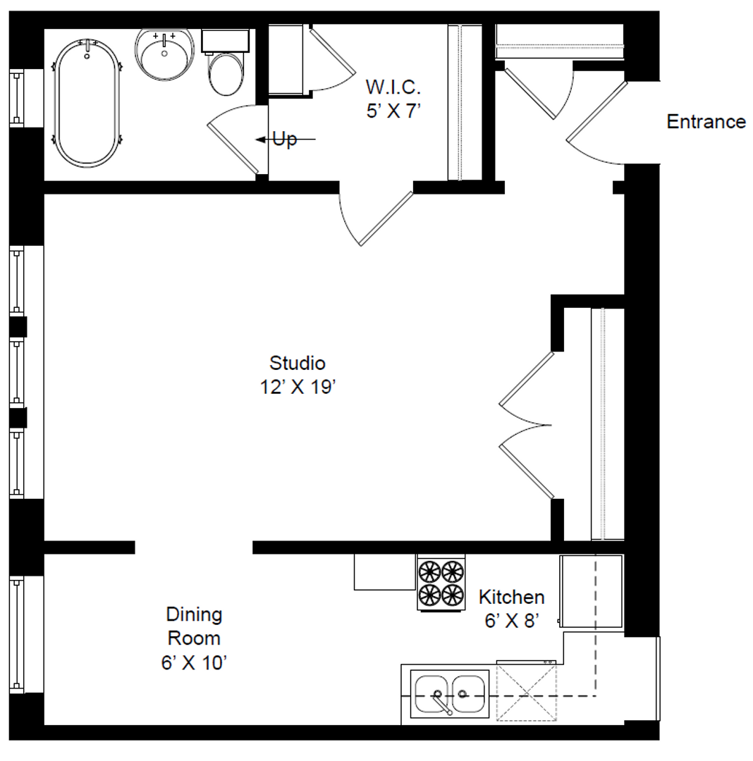 Spacious Studio with Separate Kitchen! Free Heat! Amazing Closets!