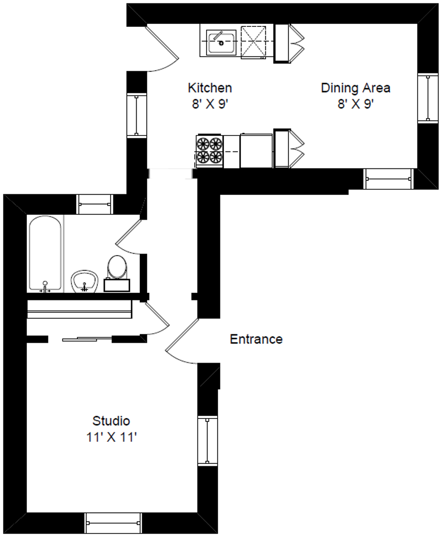 Fantastic Studio apartment can be furnished as a one bedroom by putting your living room furniture in the dining area and using the front room as a bedroom!