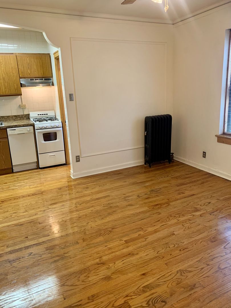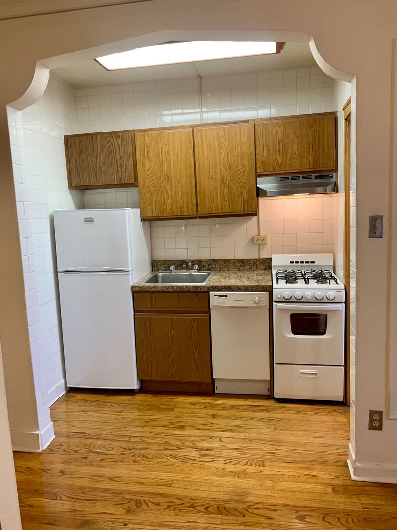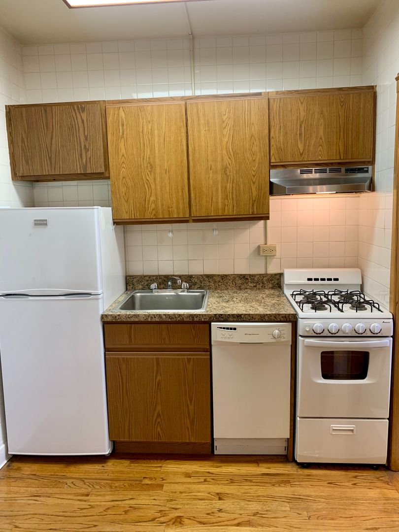 This studio features hardwood floors, kitchen with dishwasher, large windows, high ceilings, and 2 closets. The building showcases a beautiful marble and granite lobby, bike storage, laundry, and on-site management.