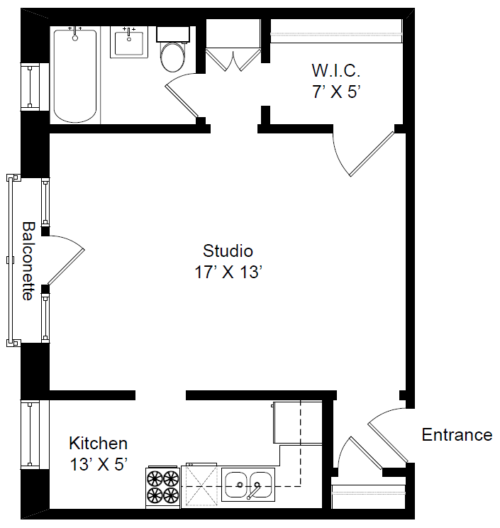 Spacious, sunny studio with big walk-in closet, separate kitchen, dishwasher, and balconette!